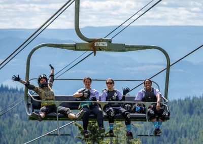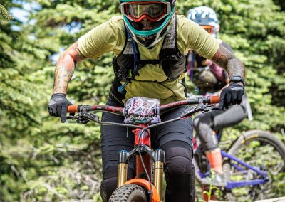 Great question, glad you asked. It is a multiple stage race where you climb to the top of the stage and are timed on the descents. The climbing part is not timed! You can relax, pace yourself, walk if you want. Once you are at the top of the stage it’s race on! For the Bombshell Enduro you can expect 5-6 stages covering somewhere around 30km.