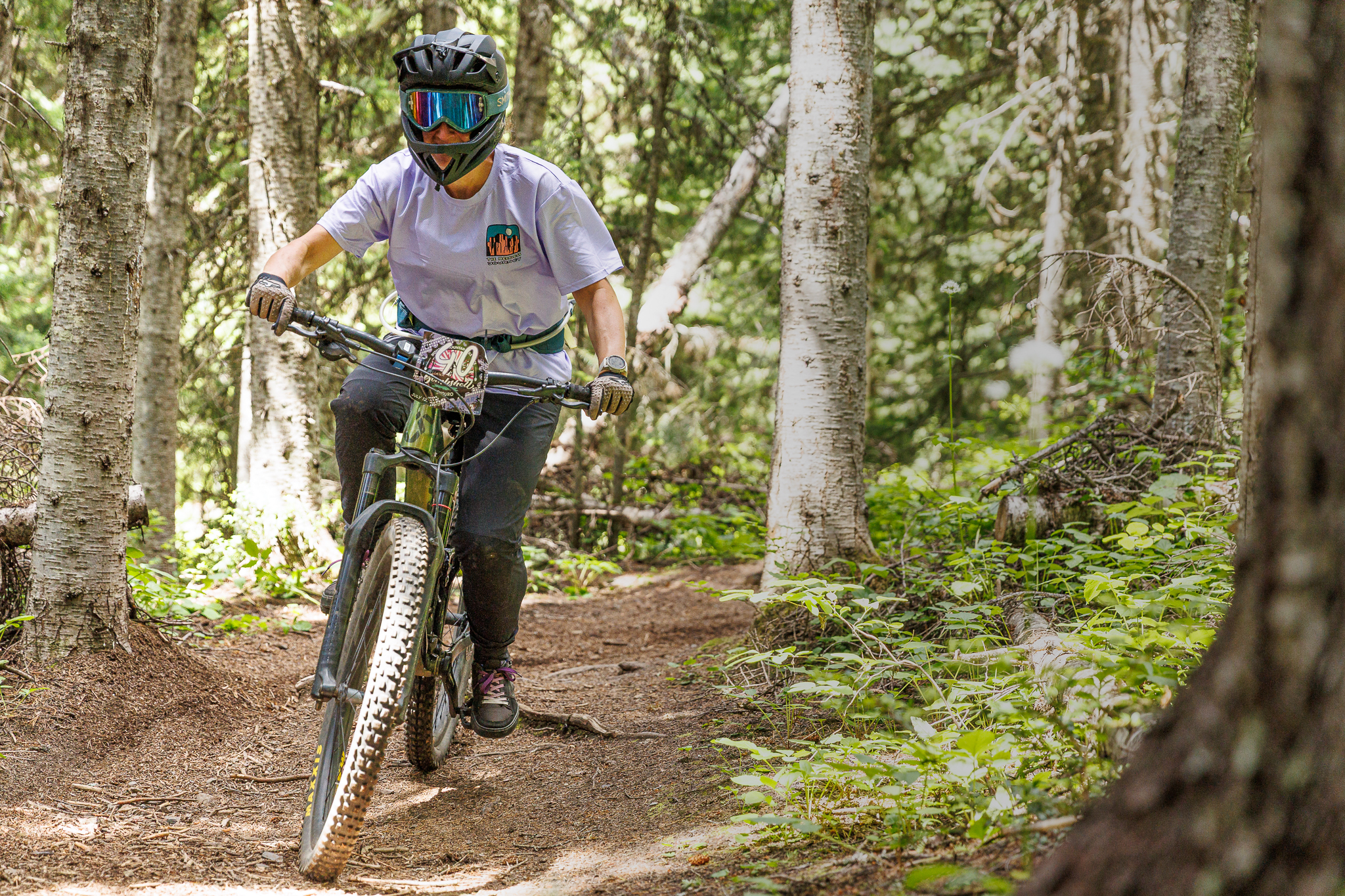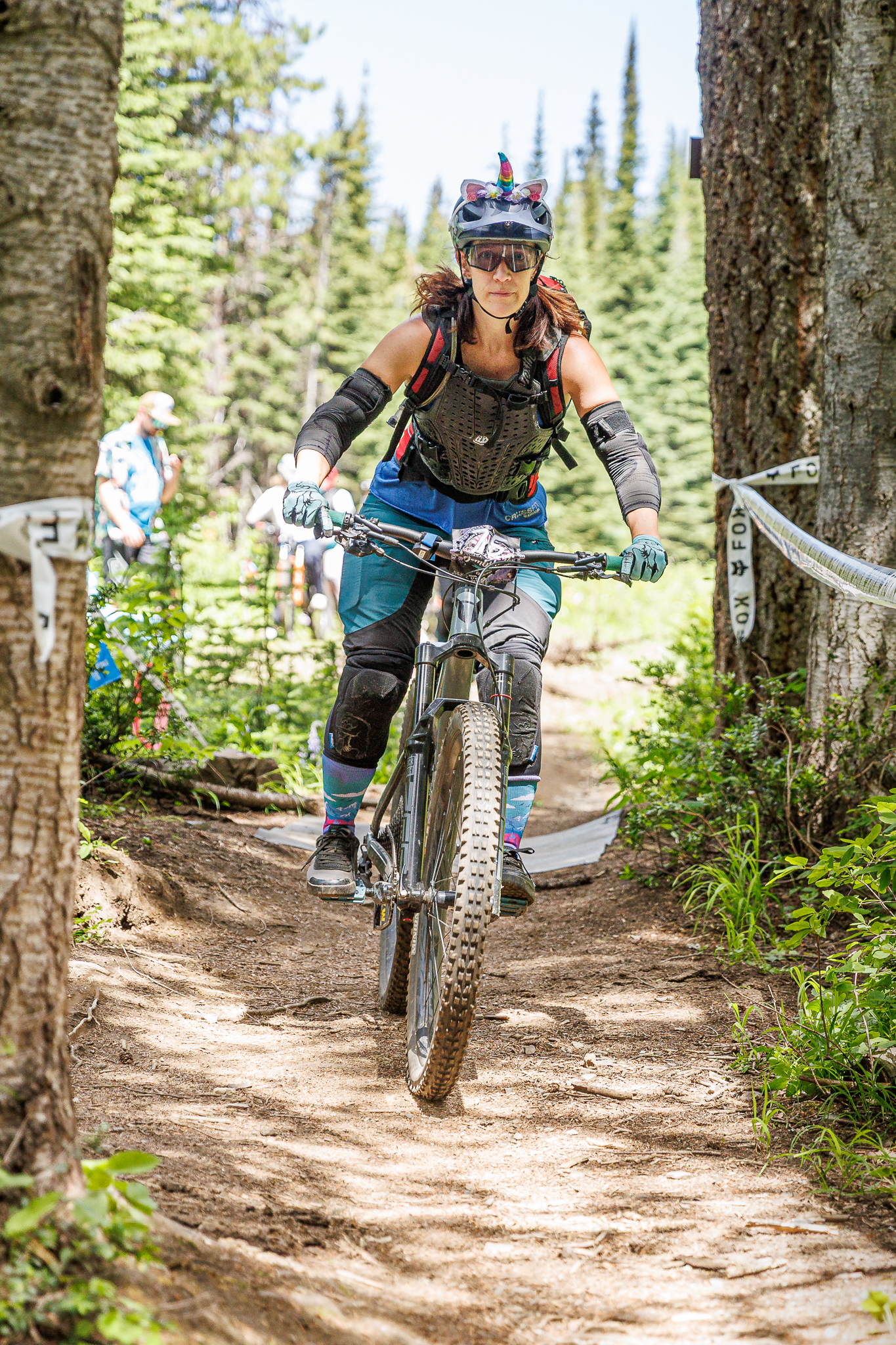 Great question, glad you asked. It is a multiple stage race where you climb to the top of the stage and are timed on the descents. The climbing part is not timed! You can relax, pace yourself, walk if you want. Once you are at the top of the stage it’s race on! For the Bombshell Enduro you can expect 5-6 stages covering somewhere around 30km.